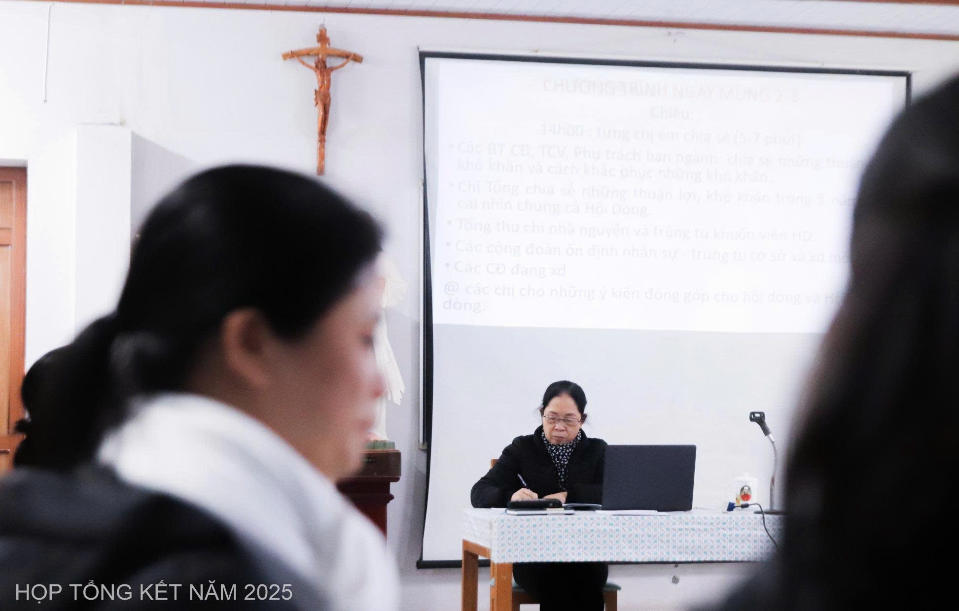 Từ ngày 1 đến 4/1/2026, quý dì bề trên các cộng đoàn cùng trưởng một số ban trong Hội Dòng đã quy tụ về Cộng đoàn Nhà Mẹ để bước vào những ngày tĩnh tâm và họp tổng kết nhiệm kỳ 4 năm (2021–2025). Cuộc họp do Dì Tổng Phụ Trách Maria Trần Thị Thu Hương chủ trì, với sự hiện diện của quý dì trong Ban Tổng Cố Vấn và các thành viên được mời, tổng cộng 29 dì tham dự.