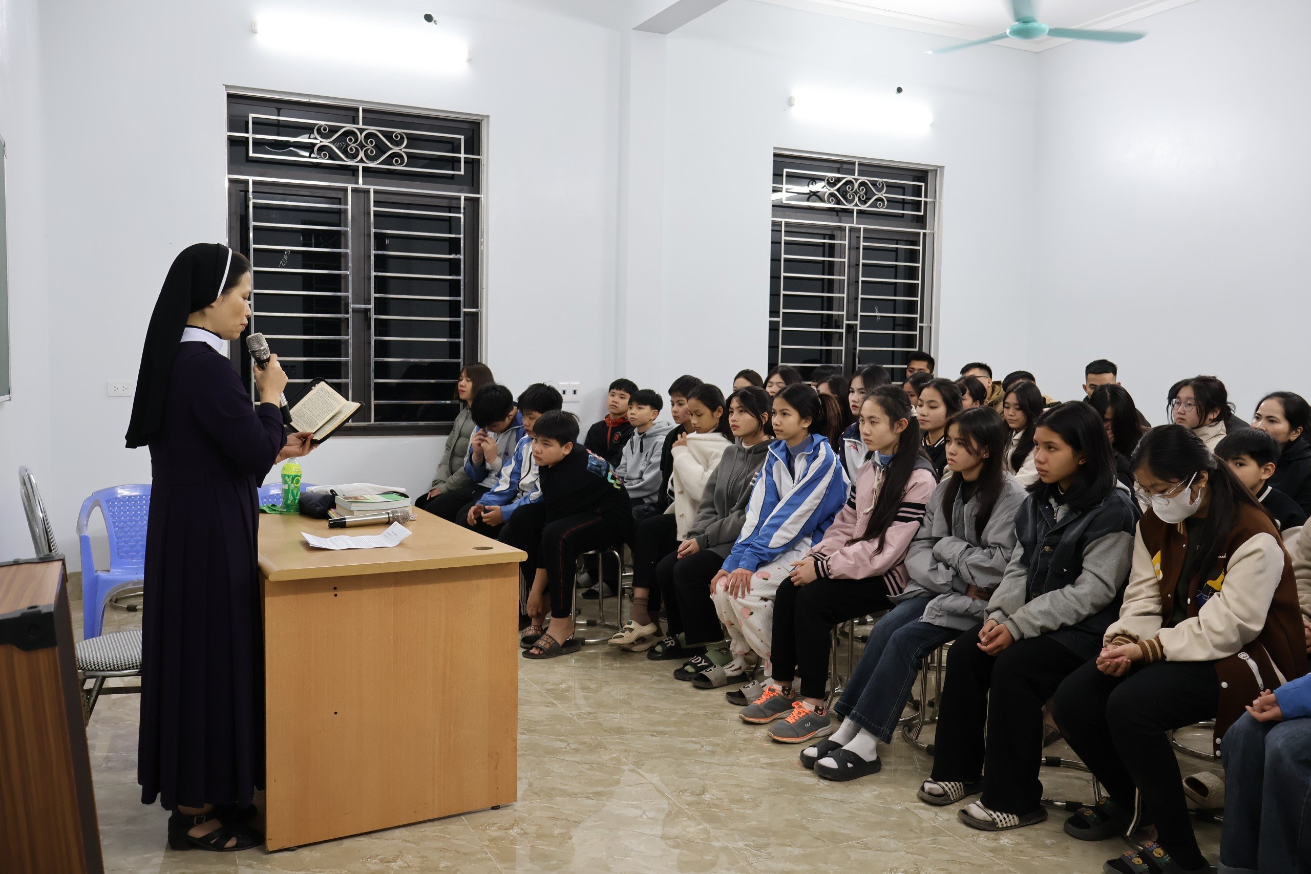 Trong hai ngày thứ Bảy ngày 24/2 và Chủ nhật 25/2, chị em trong Hội dòng Đức Mẹ Hiệp Nhất đã có dịp đến với các em thiếu nhi và giới trẻ của họ nhà xứ Đại Lãm và giáo họ Thanh Giã để giúp các em chuẩn bị tâm hồn đến với bí tích Hòa giải trong mùa Chay này với chủ đề: “Tôi phải làm gì?”. Hiện diện trong buổi gặp gỡ này, có sự hiện diện của hơn 100 em thiếu nhi của giáo xứ.