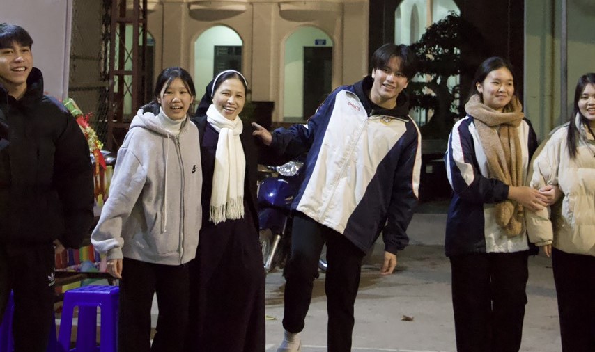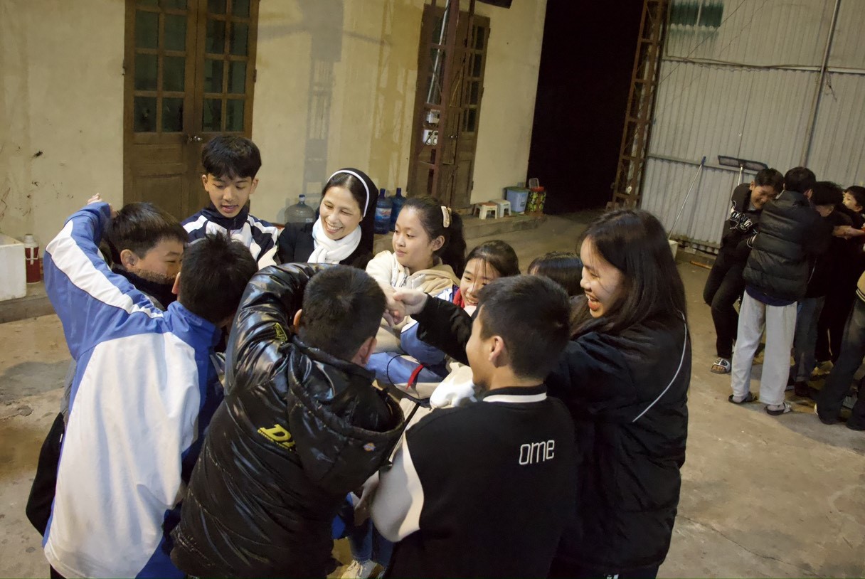 Trước khi bước vào buổi hồi tâm, trong tiết trời lạnh giá của mùa đông, các em đã được cùng nhau khởi động với những trò chơi nhẹ nhàng nhưng cũng không kém phần hấp dẫn, giúp các em tự tin vượt ra khỏi mình để đến với người khác.