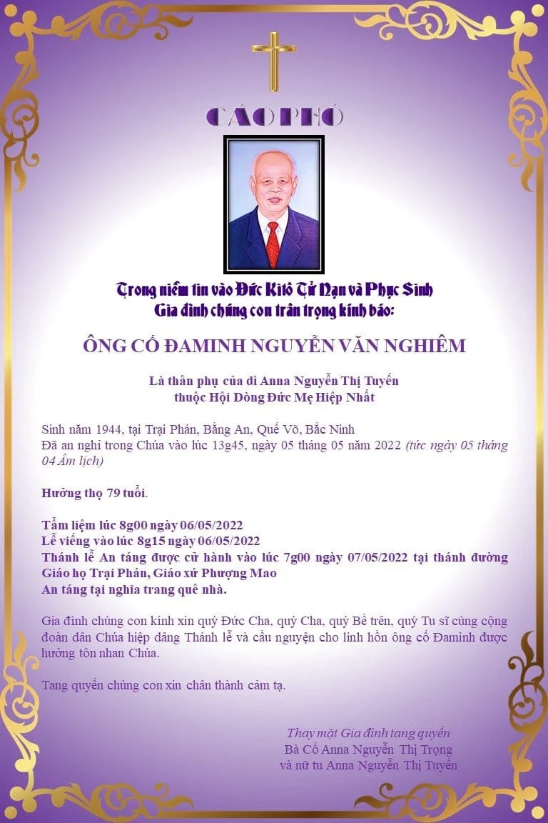 Tin Hội Dòng, Tin TứcCÁO PHÓ ÔNG CỐ ĐAMINH – THÂN PHỤ DÌ ANNA NGUYỄN THỊ TUYẾN Posted on 6 Tháng Năm, 202224 Tháng Tư, 2024 by hiepnhat 06 Th5 Lượt xem: 175 NHÌN LẠI TỔNG TU NGHỊ LẦN II Thông báo và mời dự lễ truyền chức linh mục