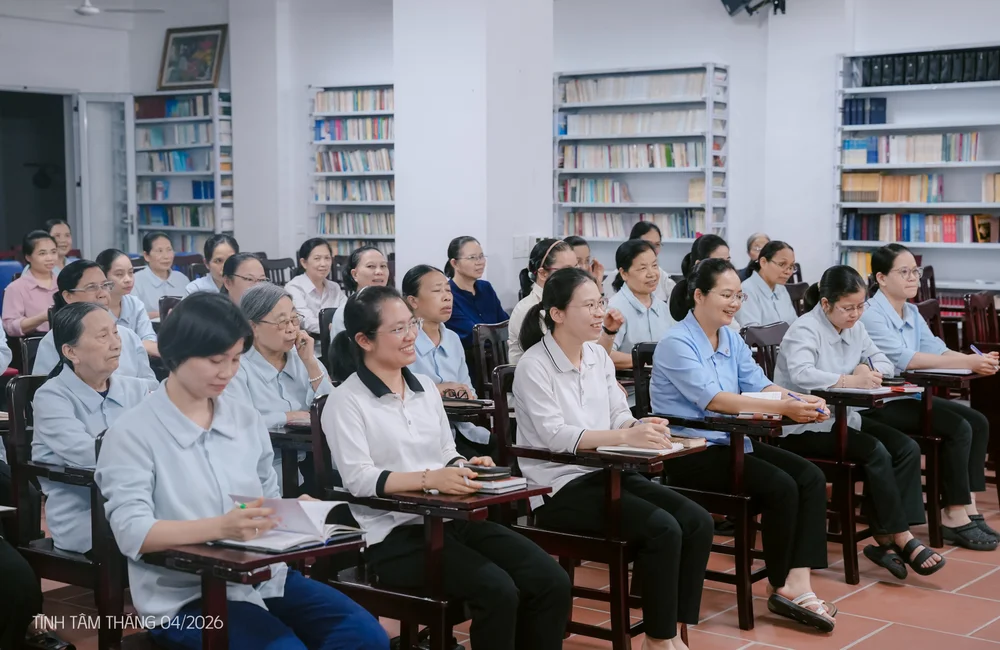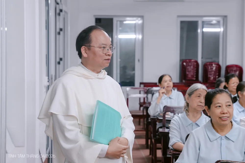 Trong bầu khí lắng đọng của những ngày tĩnh tâm tháng 4.2026, cộng đoàn Đạo Ngạn đã cùng quy tụ để nhìn lại đời sống đức tin và sứ vụ của mình. Sau lời khai mạc của chị Tổng Maria, cộng đoàn hân hoan đón mừng sự hiện diện và hướng dẫn của cha Giuse Vũ Văn Tuyên, OP – Dòng Đaminh Việt Nam. Với đề tài “Sự hiệp nhất trong đức tin và sứ vụ”, cha đã khởi đi từ Tin Mừng theo thánh Gioan, chương 17 – lời cầu nguyện tha thiết của Chúa Giêsu trước cuộc Thương Khó: “Xin cho họ nên một”. Từ đó, cha mở ra một cái nhìn vừa thực tế vừa sâu sắc về con người hôm nay giữa thế giới kỹ thuật số.
