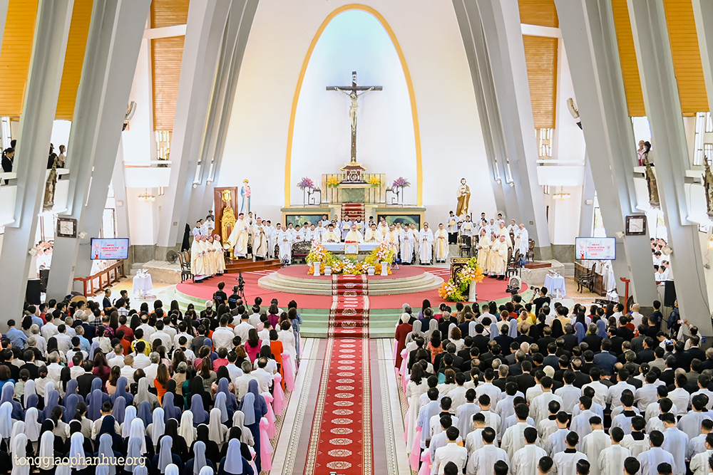 Đồng tế trong Thánh lễ này có Đức Cha Giuse Nguyễn Chí Linh – Tổng Giám mục TGP Huế, Đức Cha FX. Lê Văn Hồng – Nguyên TGM Huế, cùng 7 Đức Cha từ các Giáo phận Thái Bình, Hà Tĩnh, Vinh, Nha Trang, Qui Nhơn, Xuân Lộc, Sài Gòn; Ban Tư vấn cùng Linh mục đoàn TGP Huế, Giáo phận Đà Nẵng, Thanh Hoá, Nha Trang. Hiệp dâng Thánh lễ có đông đảo quý Đại Chủng sinh, quý Tu sĩ nam nữ, thân bằng quyến thuộc của Đức Tân TGM Phó, quý khách xa gần và đông đảo mọi thành phần dân Chúa của đại gia đình Tổng Giáo phận Huế, Giáo phận Đà Nẵng.