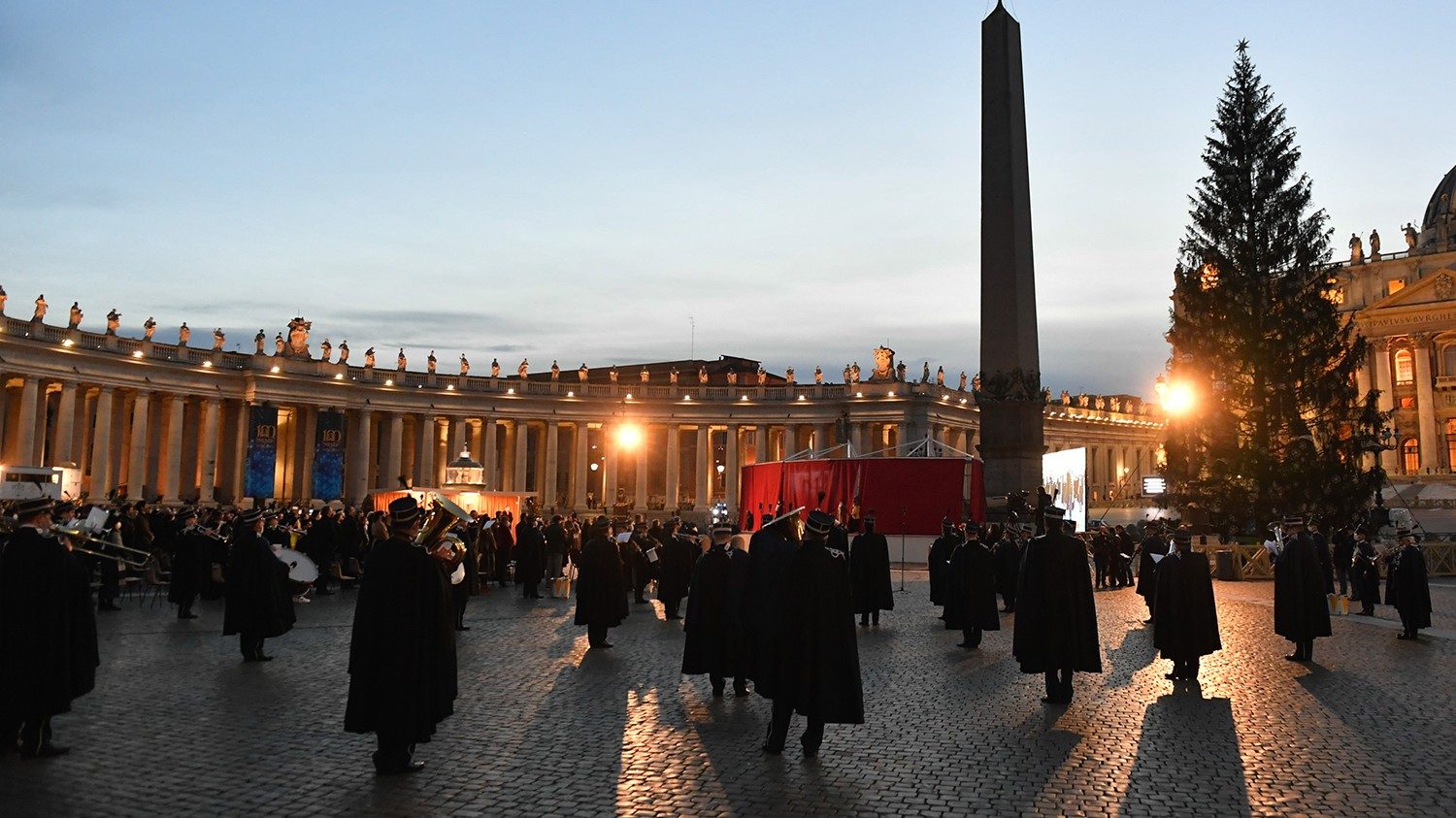 Chủ sự nghi thức khánh thành hang đá và thắp sáng cây thông là Đức Hồng Y Fernando Vérgez Alzaga, Chủ tịch Phủ Thống đốc Thành Vatican. Ngài nói rằng trong dịp kỷ niệm 800 năm hang đá đầu tiên được thực hiện và 800 năm Luật dòng Phanxicô được phê chuẩn, năm nay hang đá Giáng sinh phải đến từ miền Greccio.