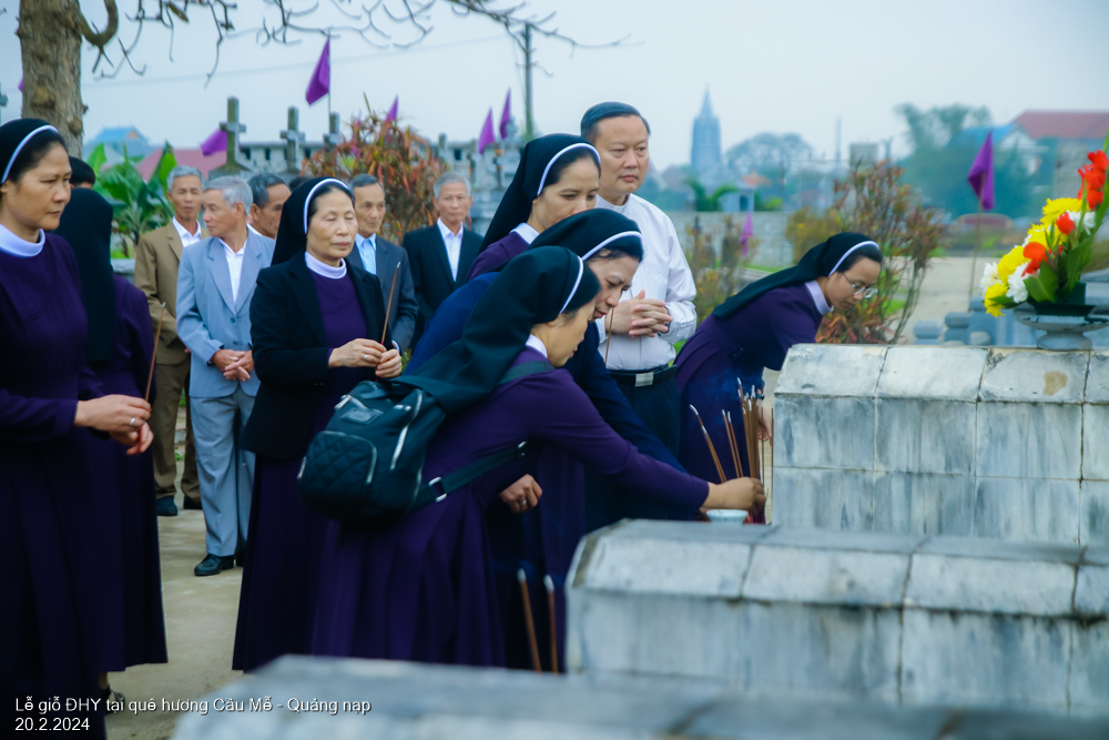 Như nghĩa cử bày tỏ lòng tri ân, thảo hiếu những công ơn mà Đức Hồng Y Phaolo Giuse (ĐHY) để lại, trước thánh lễ, quý cha GP Bắc Ninh, quý chị em dòng Đức Mẹ Hiệp Nhất cùng cộng đoàn dân Chúa Giáo xứ Quảng Nạp đã thăm viếng, thắp hương cầu nguyện tại phần mộ của Ông nội ĐHY tại Giáo họ Cầu Mễ.
