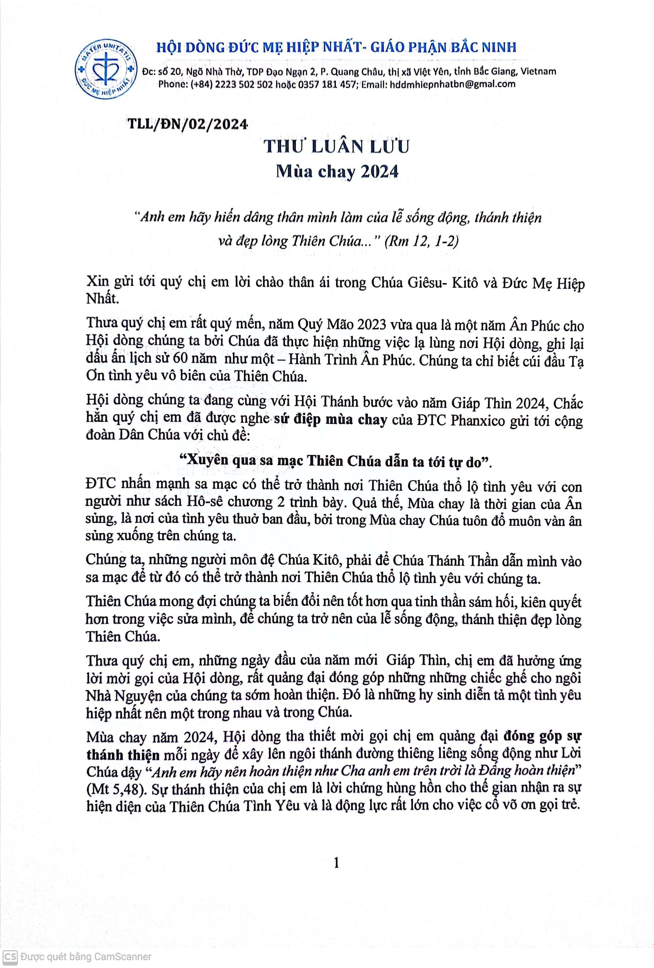 Xin gửi tới quý chị em lời chào thân ái trong Chúa Giêsu Kitô và Đức Mẹ Hiệp Nhất. Thưa quý chị em rất quý mến, năm Quý Mão 2023 vừa qua là một năm Ân Phúc cho Hội dòng chúng ta bởi Chúa đã thực hiện những việc lạ lùng nơi Hội dòng, ghi lại dấu ấn lịch sử 60 năm như một – Hành Trình Ân Phúc. Chúng ta chỉ biết cúi đầu Tạ Ơn tình yêu vô biên của Thiên Chúa…
